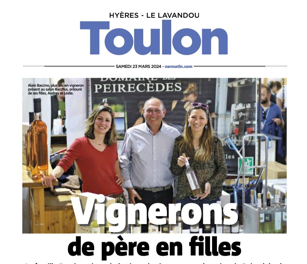 En 1991, Alain Baccino et son épouse Véronique édifient la cave adossée au bastidon des PEIRECÈDES. Audrey et Leslie travaillent aux côtés de leurs parents sur l’exploitation familiale. Audrey (Œnologue) vinifie les vins avec beaucoup de raffinement et de précisions. Leslie mène le pôle administratif de la société avec Véronique, Qui crée également tous les visuels de l’entreprise.